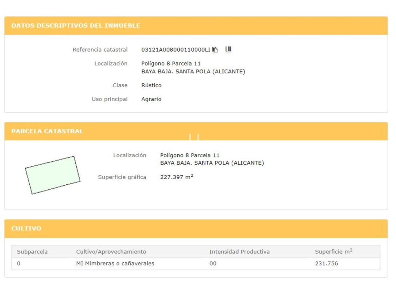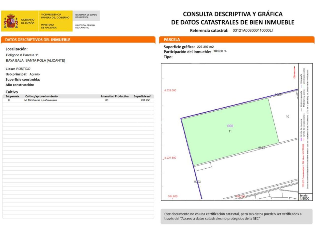 Ubicado en Santa Pola, en la provincia de Alicante/Alacant, se presenta un amplio terreno de carácter rústico, cuya extensión total es de 220.000 metros cuadrados. De esta superficie, 220.000 metros cuadrados están destinados específicamente para uso agrario. Suelo No Urbanizable Protegido. Finca rústica de pastos en secano. Registralmente costa que existe en el lindero norte una servidumbre de paso para personas y vehículos, de 7 m de ancho, La finca pertenece a la Comunidad de regantes Carrizales, adscrita a la Confederación Hidrográfica del Segura. Se accede a la finca por el camino del Parque Natural de las Salinas de Santa Pola.